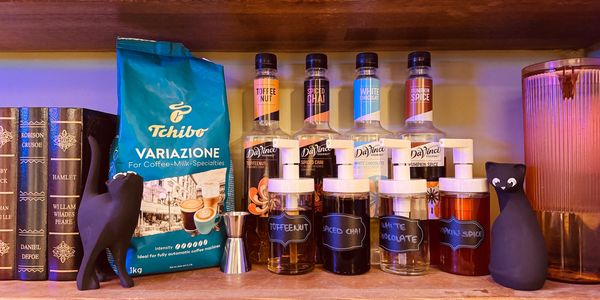 Behind our pitch-black door at Calin Café awaits the rich aroma of Tchibo coffee, brewed with care and delicately aromatized with high-quality sweeteners. Each cup is smooth, refined, and warmly inviting — a quiet elegance hidden just beyond the dark entrance.
